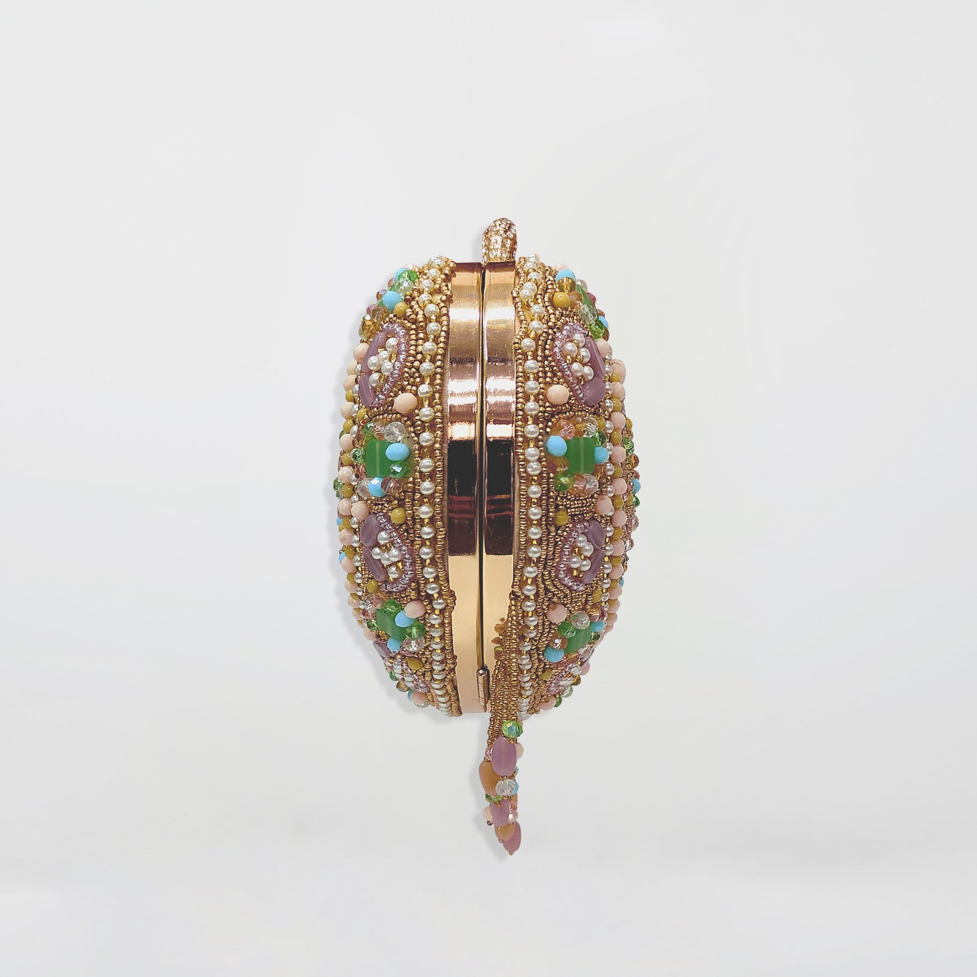 Ember Gleam is where traditional richness meets fiery modern flair. Designed for the woman who lights up every room, this collection features bags with warm golds, burnt oranges, deep maroons, and glimmering handwork that reflects the soul of celebrations.