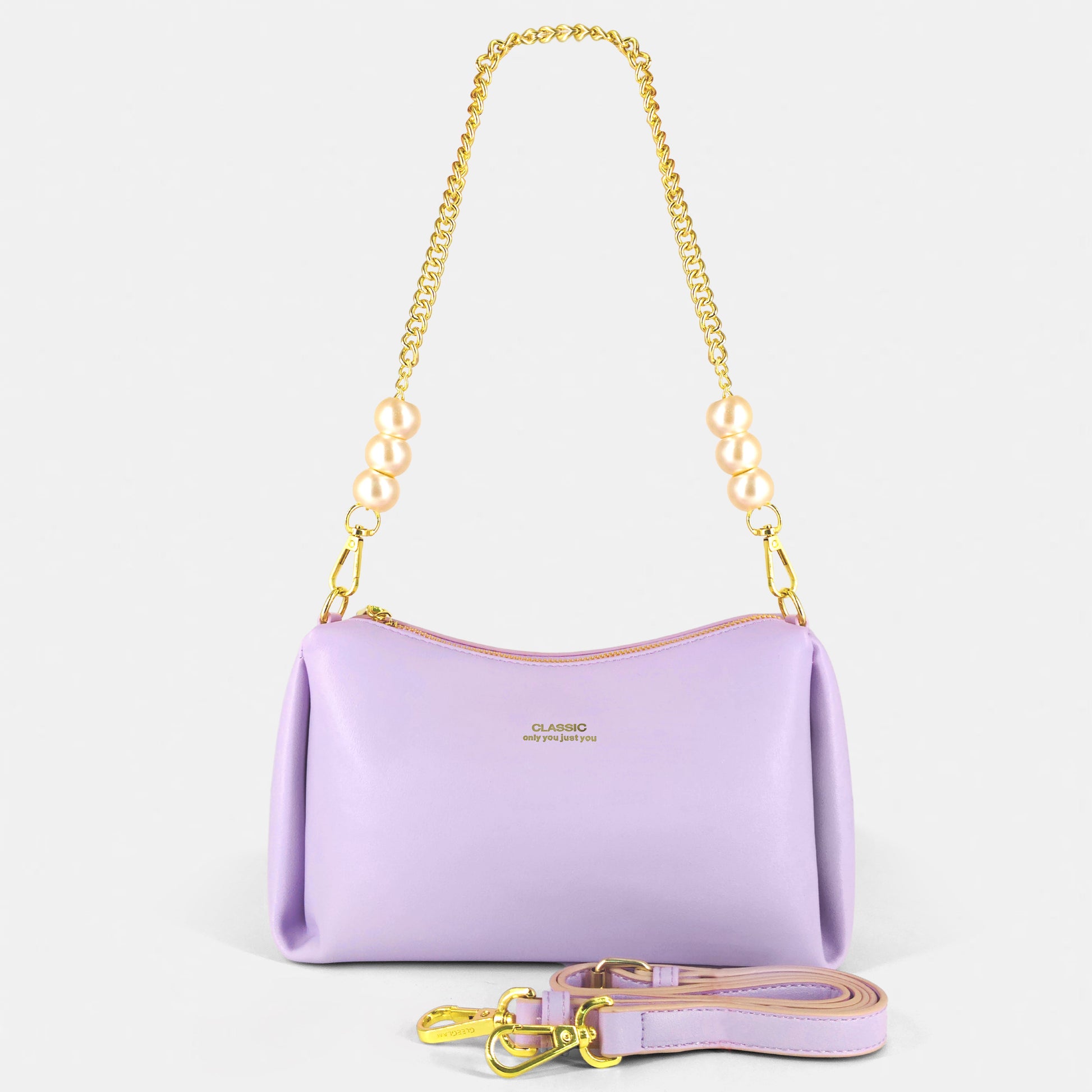 A comfortable top handle and an adjustable crossbody strap allow versatile styling, whether carried hand-held, on the shoulder, or across the body. The polished metallic accents add a touch of sophistication, making it suitable for both daily wear and special outings.